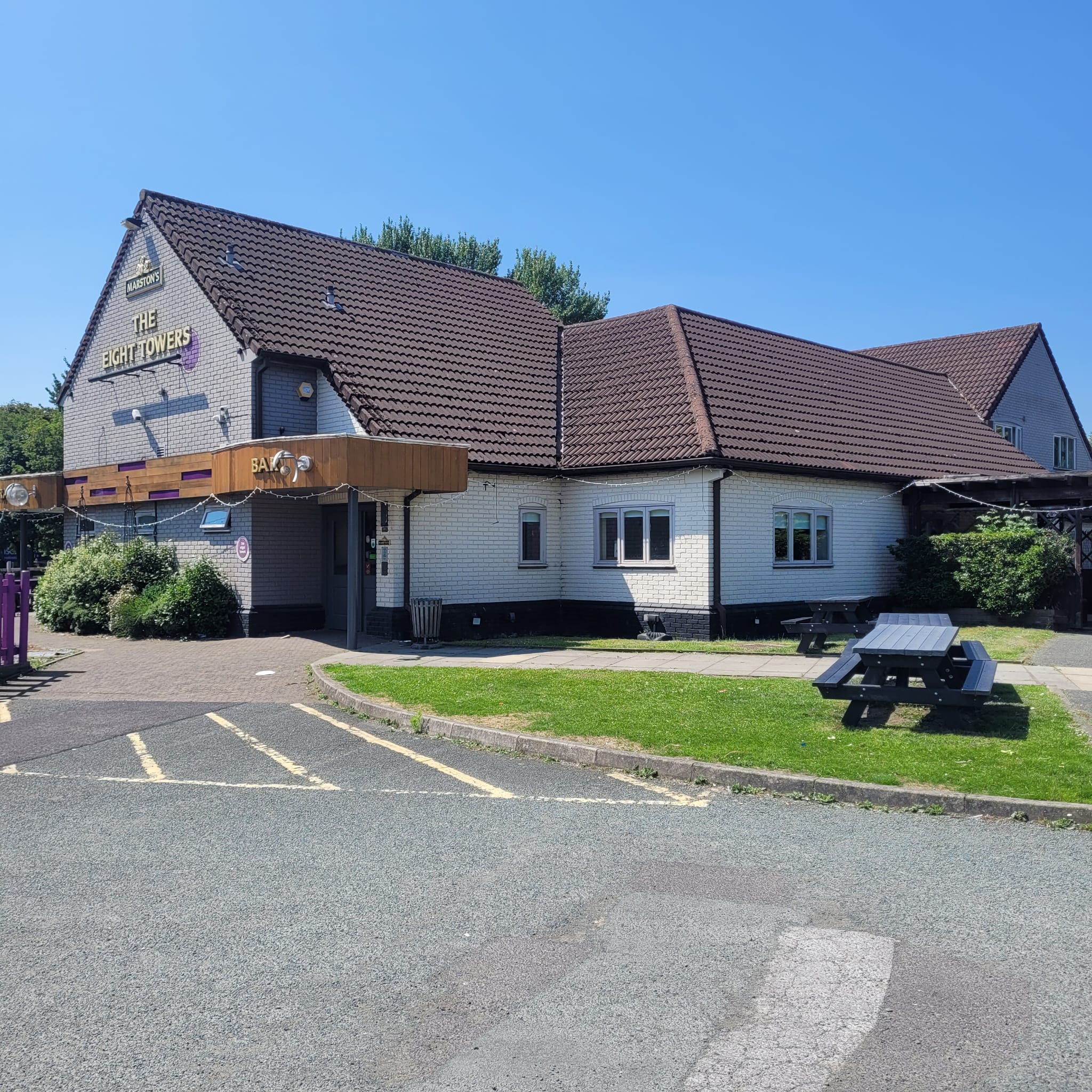 On the other side you will find a warm and welcoming dining side where everyone feels at home, serving proper pub food and familiar favourites. The Eight Towers benefits from a huge outdoor space, perfect for hosting outdoor music events and festivals.